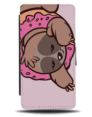 Premium Fat Sloth Stuck In Doughnut Inflatable Flip Wallet / Book Cover Phone Case