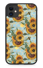 Blue Geometric Flowery Rubber Phone Case Cover Sunflower Sunflowers Yellow Petals G235 - Rubber Phone Case
