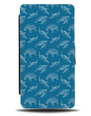 Blue Sea Turtle Flip Wallet Phone Case Multiple Turtles White Drawing Of Ocean BV27 - Flip Wallet Cases