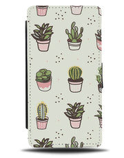 Cartoon Cactus Plant Pattern Flip Wallet Phone Case Plants Pot House Home M615B - Flip Wallet Cases