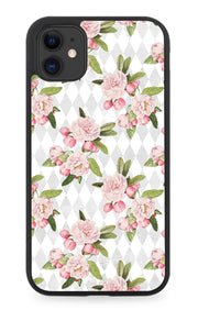 Chequered Floral Pattern Rubber Phone Case Cover Print Flowers Roses Pink Style F037 - Rubber Phone Case