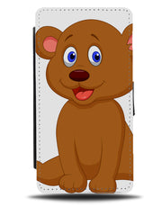 Children's Style Brown Bear Flip Wallet Phone Case Bears Face Cartoonish For Kids BI57 - Flip Wallet Cases
