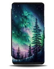 Colourful Streaks In The Sky Flip Wallet Phone Case Northern Lights Picture Stars BR05 - Flip Wallet Cases