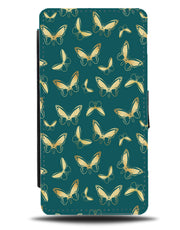Dark Green With Golden Butterfly Wings Flip Wallet Phone Case Butterflies Gold Q702C - Flip Wallet Cases