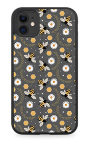Dark Grey Daisies and Bees Rubber Phone Case Bee Daisy Honeycomb Summer Q593G - Rubber Phone Case