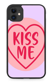 Funny Kiss Me Love Rubber Phone Case Retro Sweets Purple Words Heart Shape P275B - Rubber Phone Case