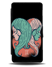Gemini Zodiac Flip Wallet Phone Case Geminis Symbol Logo Girls Faces Star Sign P071 - Flip Wallet Cases