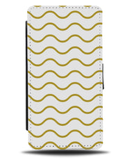Golden Wavey Pattern Flip Wallet Phone Case Waves Lines Line White Gold Curvy Q863G - Flip Wallet Cases