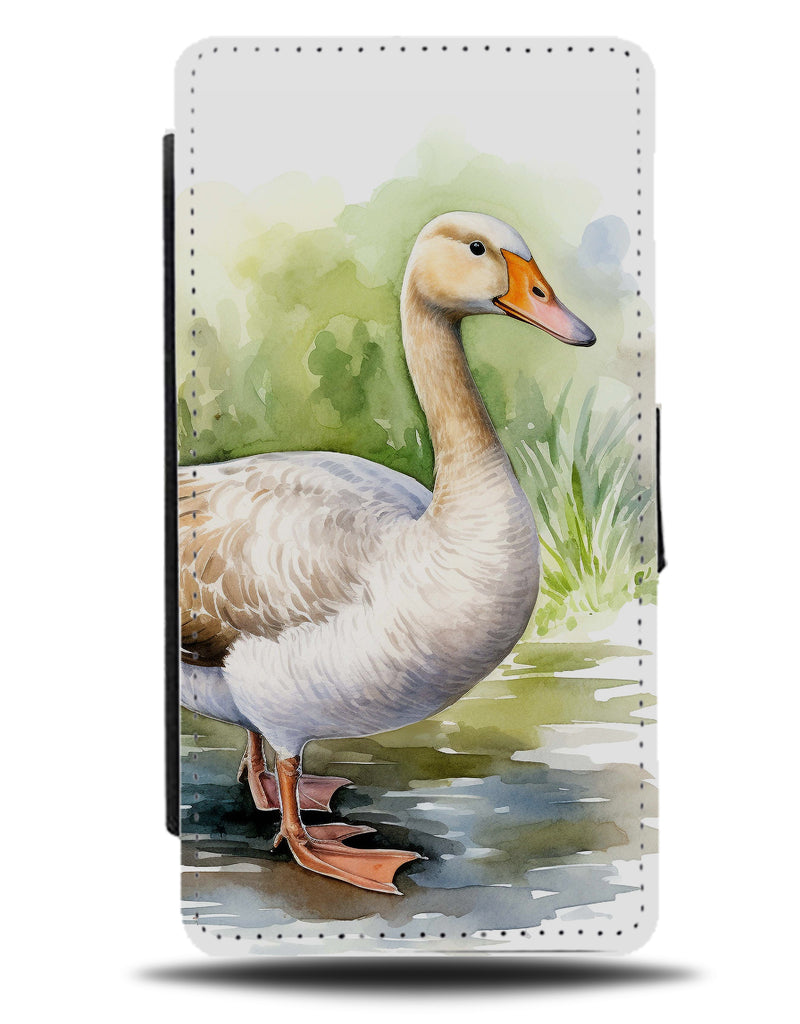 Goose Flip Wallet Case Geese Gooses Duck Ducks White Swan Swans Watercolour DJ06 - Flip Wallet Cases