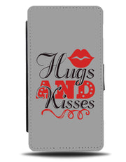 Grey and Red Hugs and Kisses Flip Wallet Phone Case XOXO Hug Kiss Lips Marks Q682 - Flip Wallet Cases