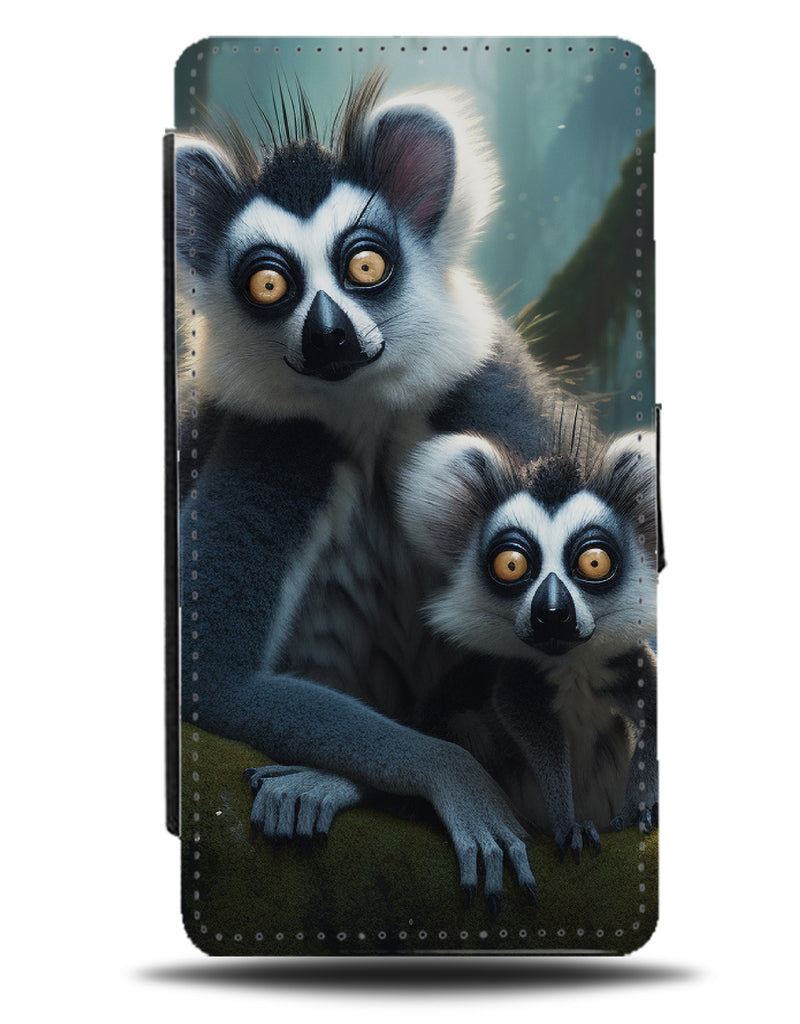 Lemur Pair Flip Wallet Case Lemurs Lemor Animal Monkeys Monkeys Funny DL05 - Flip Wallet Cases