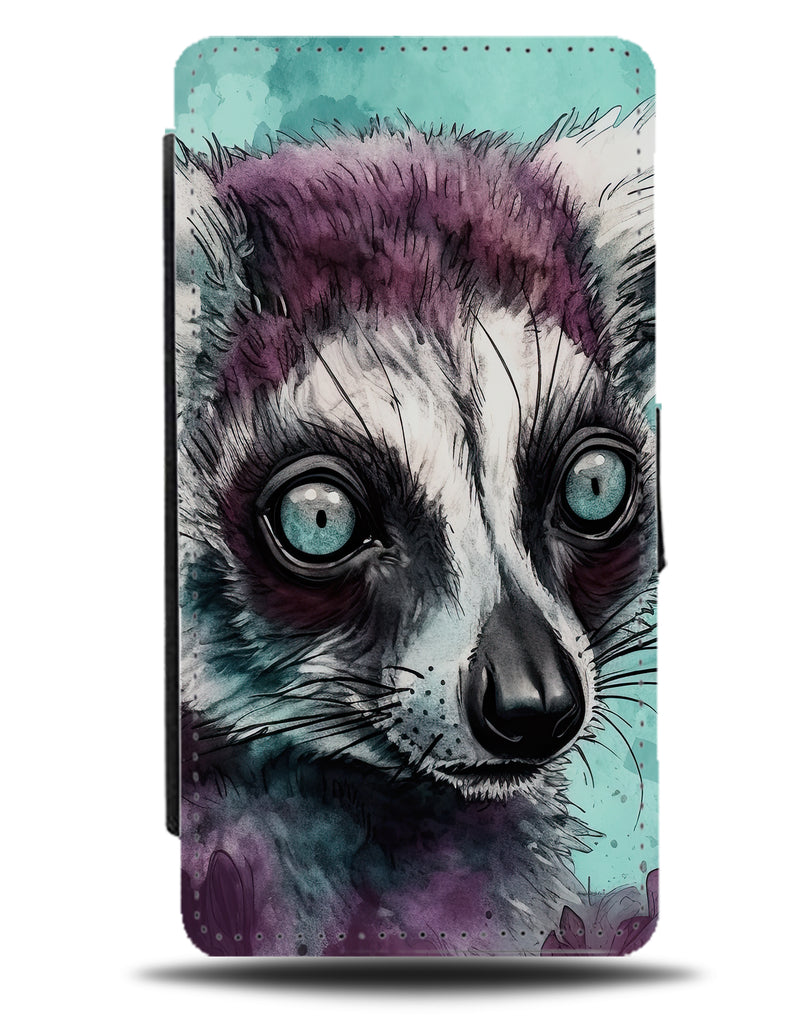 Lemur Watercolour Face Painting Design Flip Wallet Case Lemurs Monkey Teal DM36 - Flip Wallet Cases