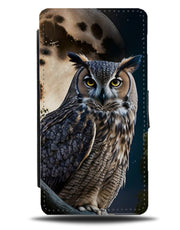 Owl At Night Picture Flip Wallet Phone Case Photo Owls Full Moon Shape Photograph BR01 - Flip Wallet Cases