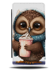 Owl Having A Froffy Hot Chocolate Flip Wallet Phone Case Winter Warm Drink Creamy LP90 - Flip Wallet Cases