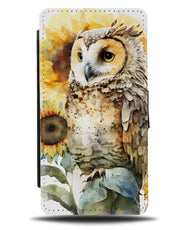 Owl In Sunflowers Flip Wallet Phone Case Sunflower Owls Sun Flower Summer Birds BR37 - Flip Wallet Cases
