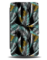 Pastel Green and Gold Palm Tree Leaves On Black Flip Wallet Phone Case Golden Q711A - Flip Wallet Cases