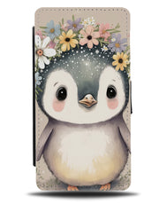 Penguin In Flower Crown Flip Wallet Phone Case Penguins Face Watercolour Painting BJ32 - Flip Wallet Cases