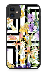 Retro Floral Design Rubber Phone Case Flowers Black and White 60s Vibe Style BS54 - Rubber Phone Case