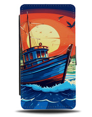 Sailing In The Sea Cartoon Scene Flip Wallet Case Sailor Sail Boat Boats DP34 - Flip Wallet Cases