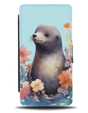 Seal Pup Flip Wallet Case Puppy Seals Sea Lion Baby Floral Flower Cartoon DM40 - Flip Wallet Cases