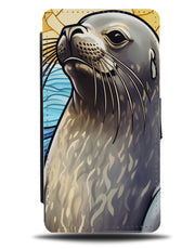 Seal Stained Glass Window Design Flip Wallet Case Art Work Seals Sea Lion DP35 - Flip Wallet Cases