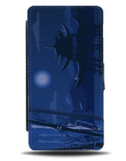 Shinto Japanese Scene Flip Wallet Phone Case Moonlight Japan Shrine Bamboo House M715 - Flip Wallet Cases
