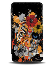 Tiger Skull Flip Wallet Phone Case Tigers Mexican Animal Floral Head Flowers Red M731 - Flip Wallet Cases