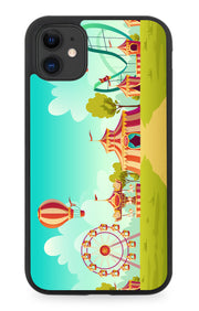 Vintage Cartoon Theme Park Rubber Phone Case Amusement Rides Ride Carnival Q569 - Rubber Phone Case