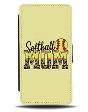 Yellow Softball Mom Flip Wallet Phone Case Mum Mothers Day Soft Ball Gift Present LQ04 - Flip Wallet Cases