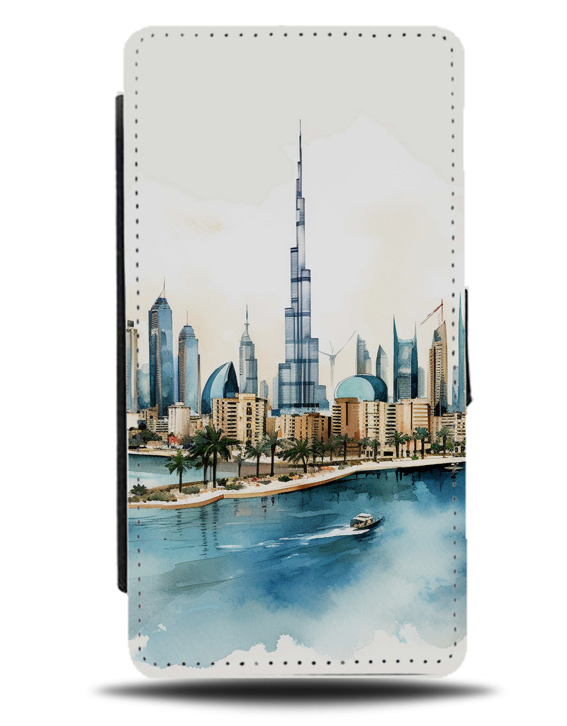 Watercolour Dubai Skyline Flip Wallet Case Sky Line Buildings Dubais UAE DJ01