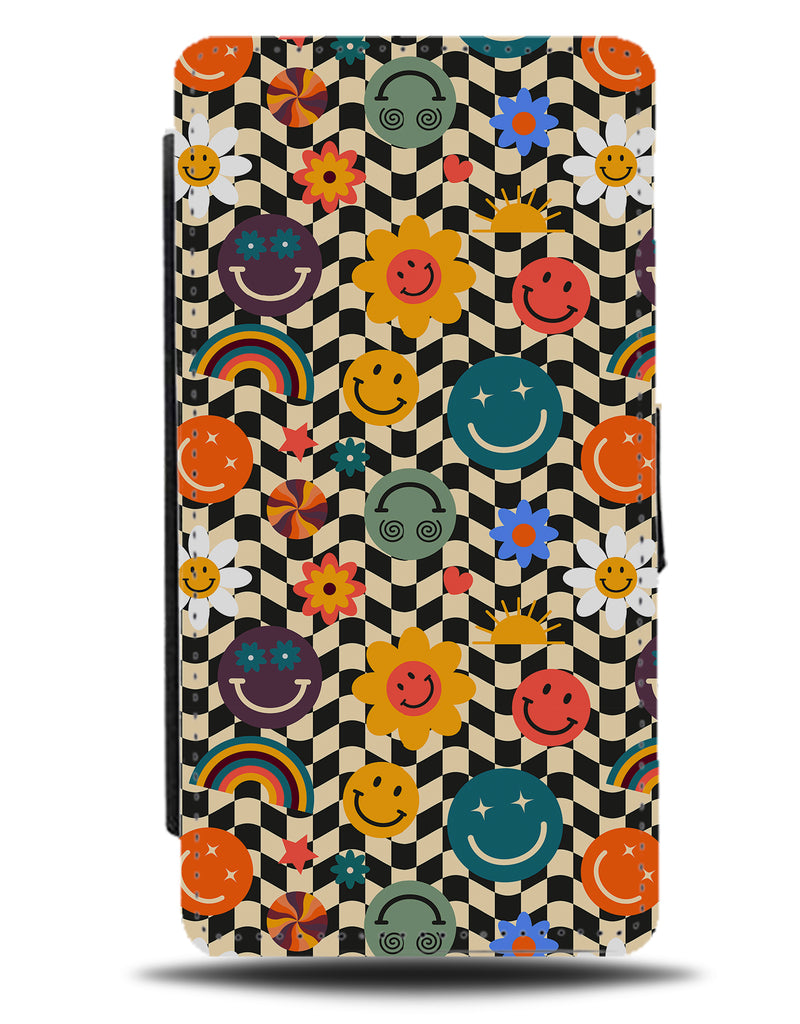 Vintage Smiley Faces Flip Wallet Case Retro Classic 50s 60s 70s Hippy Style DK31
