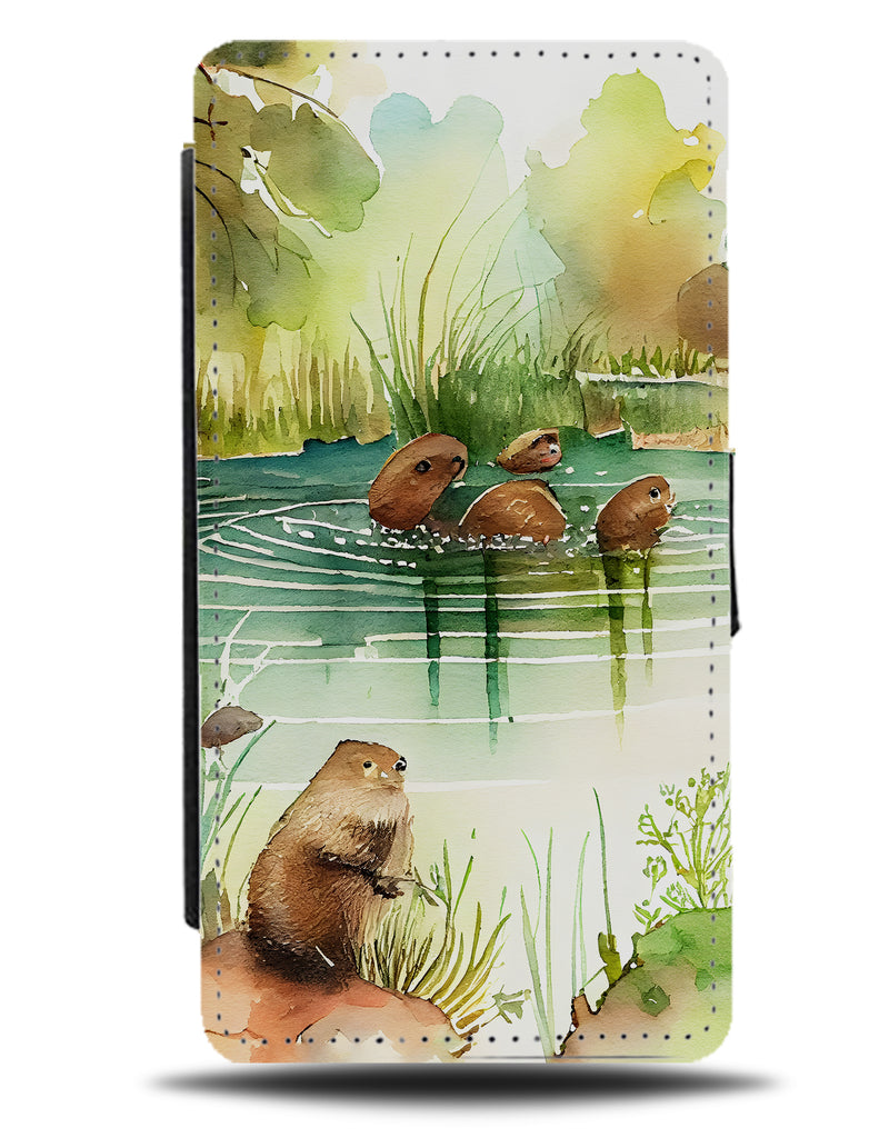Watercolour Beavers On The Bank Flip Wallet Case Beaver River Dam Beever DK81