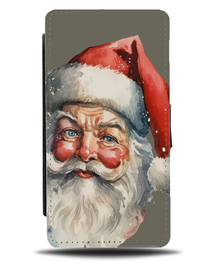 Vintage Santa Claus Flip Wallet Case Santas Hat Face Picture Classic Look DQ09