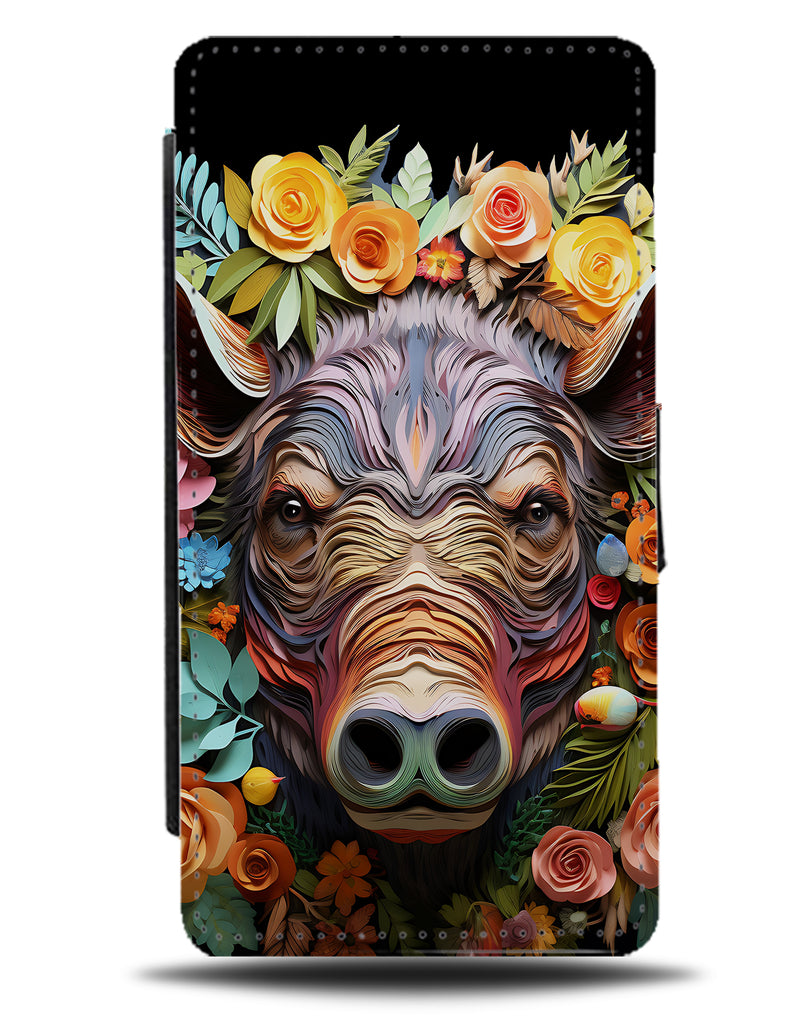 Warthog Floral Flip Wallet Case Wart Hog Hogs Warthogs Face Head Flowers DQ72