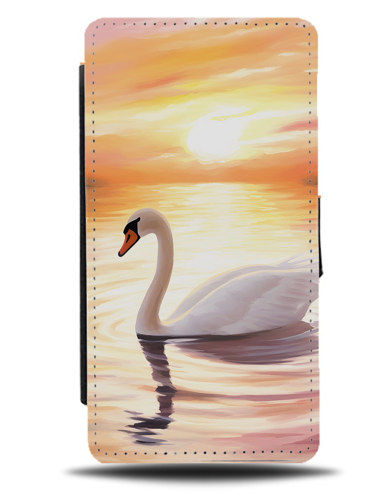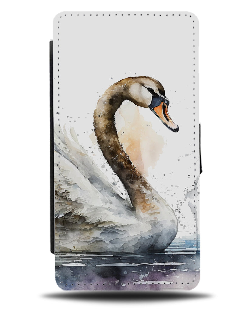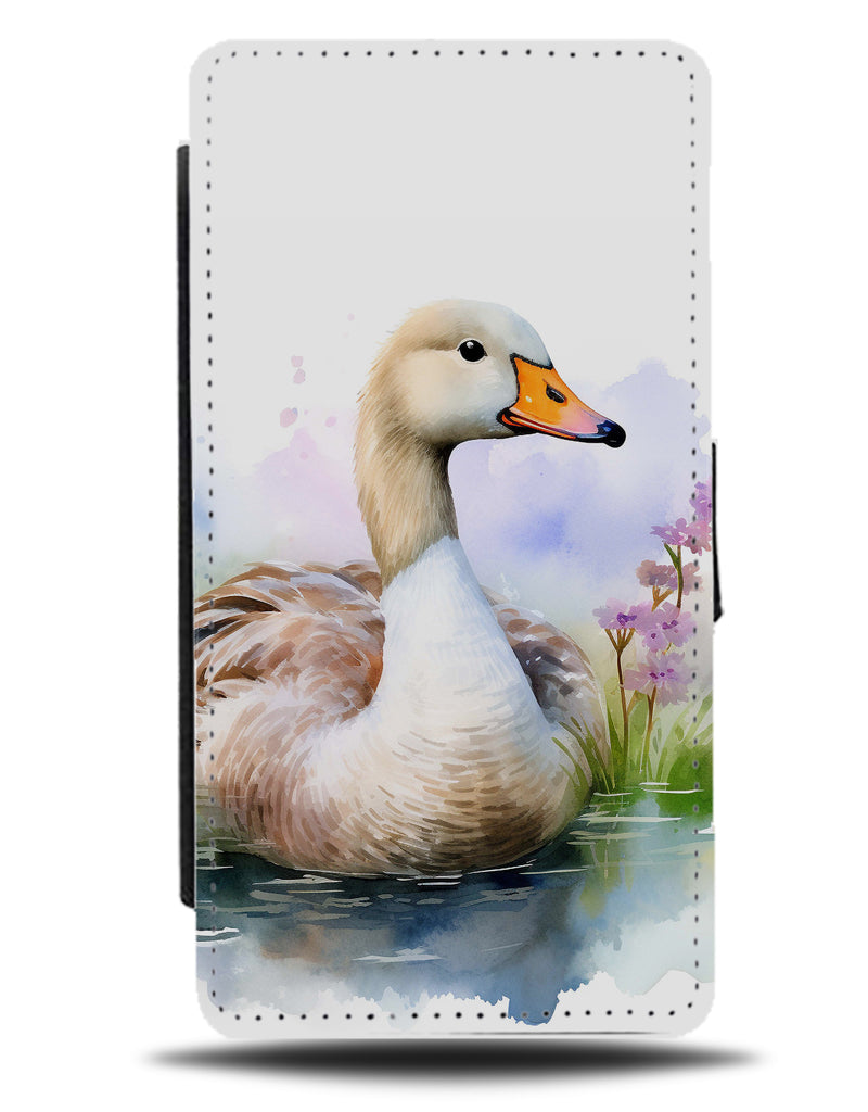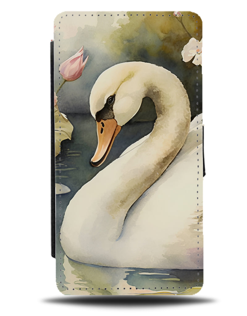 Swimming Goose Painting Design Flip Wallet Case Geese Swan Swans White Duck DJ07