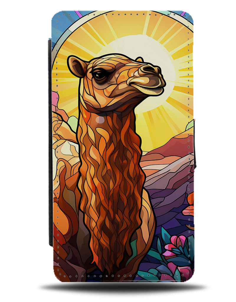 Sunshine Camel Stain Glass Design Window Flip Wallet Case Stained Camels DJ57