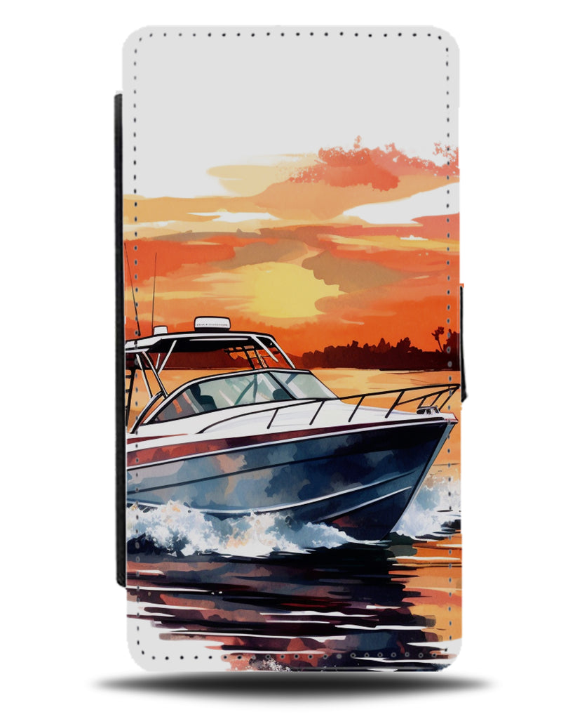 Sunset Speedboat Design Flip Wallet Case Speed Boat Boats Sunrise Sunny DL41