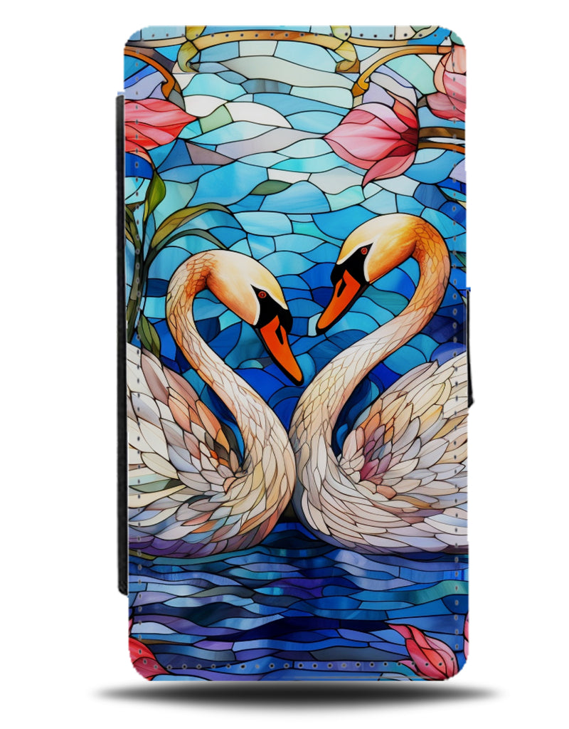 Swans Stained Glass Window Flip Wallet Case Swan Goose Geese Couple Pair DP49