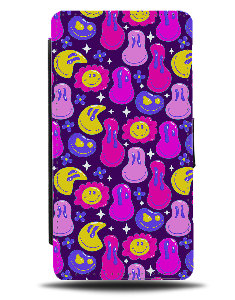 Trippy Smiley Faces Flip Wallet Case Face Smile Smiles Retro Colours Weird DP86
