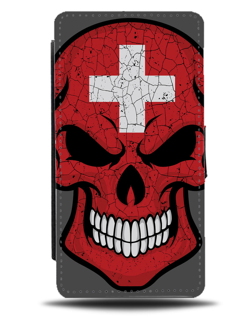Switzerland Skull Flip Wallet Case Face Head Switzerlands Swiss Flag Cross DR03