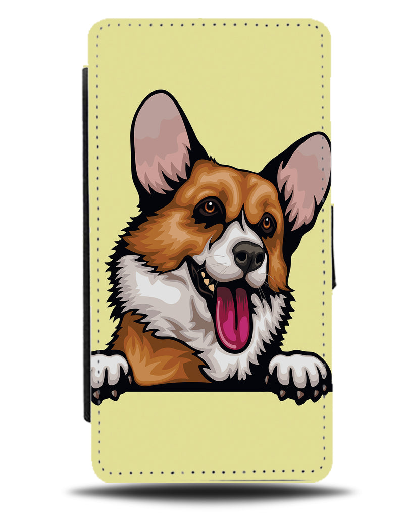 Welsh Corgi Dog Artwork Flip Wallet Phone Case Dogs Corgis Pet Picture Beige BI56