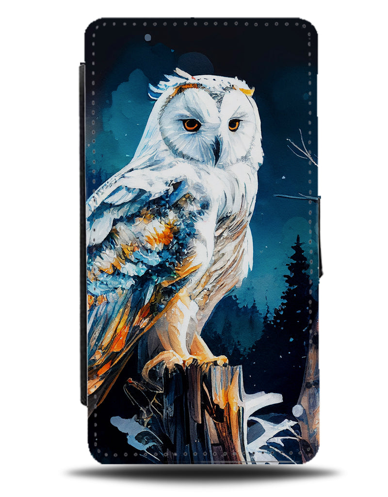 White Magical Owl Flip Wallet Phone Case Magic Owls Wizard Wizards Snow Snowy BU06