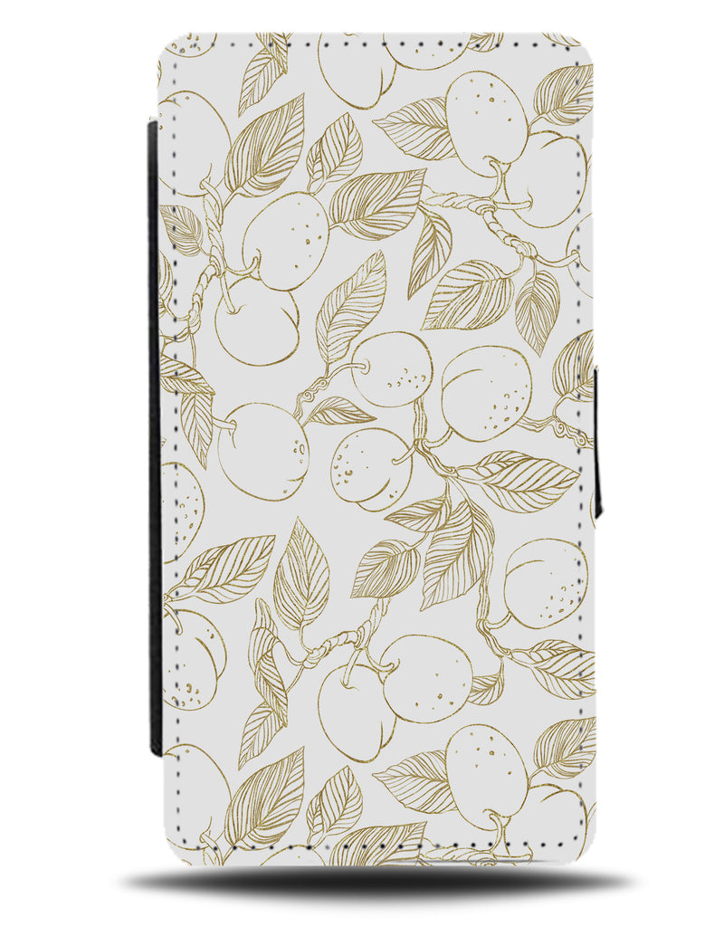 White and Gold Plums Flip Wallet Phone Case Plum Stencils Fruits Plumb Leafs BV93