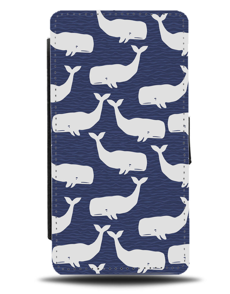 Whale Pattern Flip Wallet Phone Case Patterning Whales Humpback Sperm Deep Blue BW83