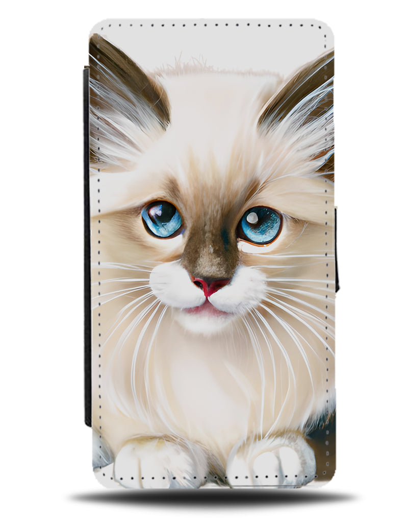 White Birman Cat Flip Wallet Phone Case Cats Blue Eyes Eyed Cats Long Haired Q451B