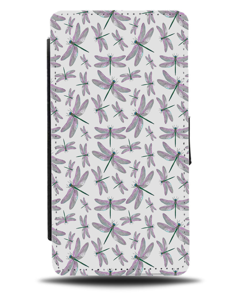 White and Purple Dragon Fly Bugs Flip Wallet Phone Case Dragon Flies Dragonflies Q648B