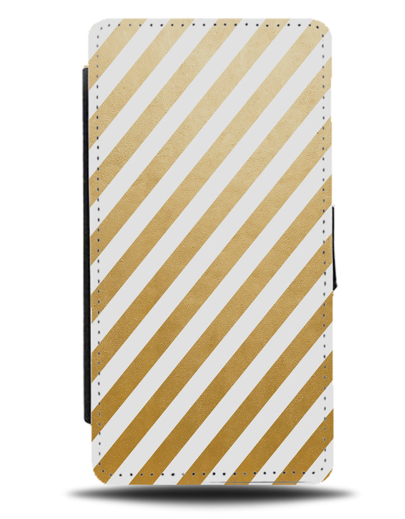 White and Golden Diagonal Stripes Flip Wallet Phone Case Stripe Lines Foil Print Q699G