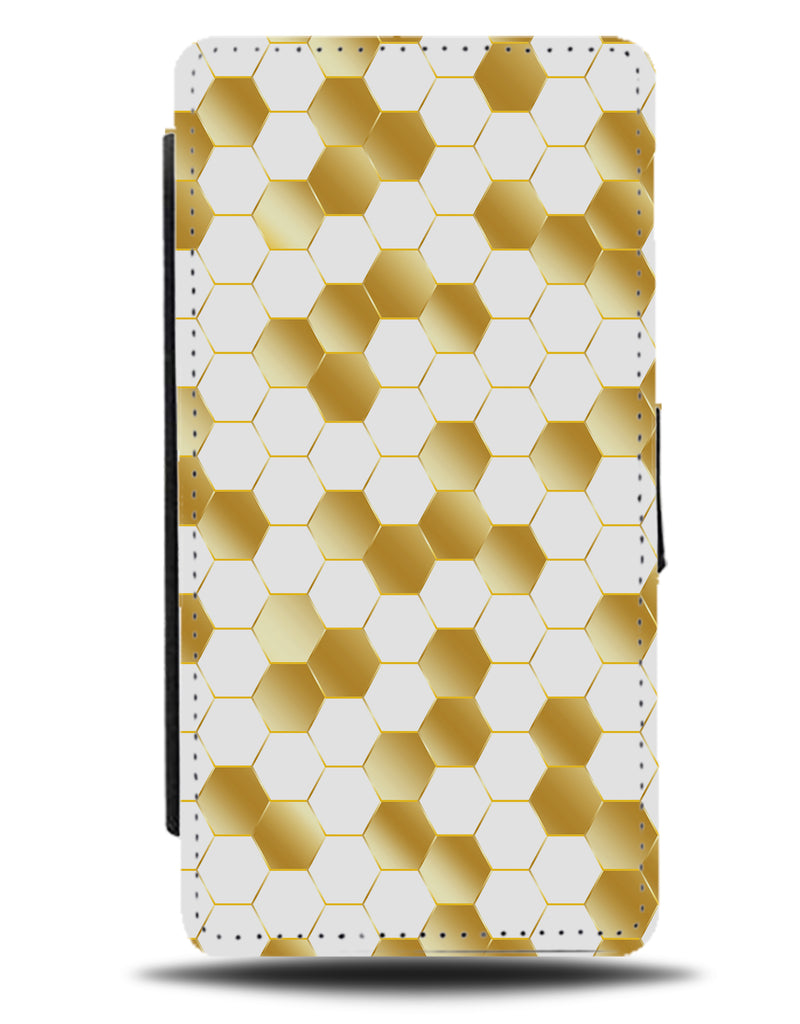 White and Golden Beehive Flip Wallet Phone Case Honeycomb Pattern Hexagon Hex Q803