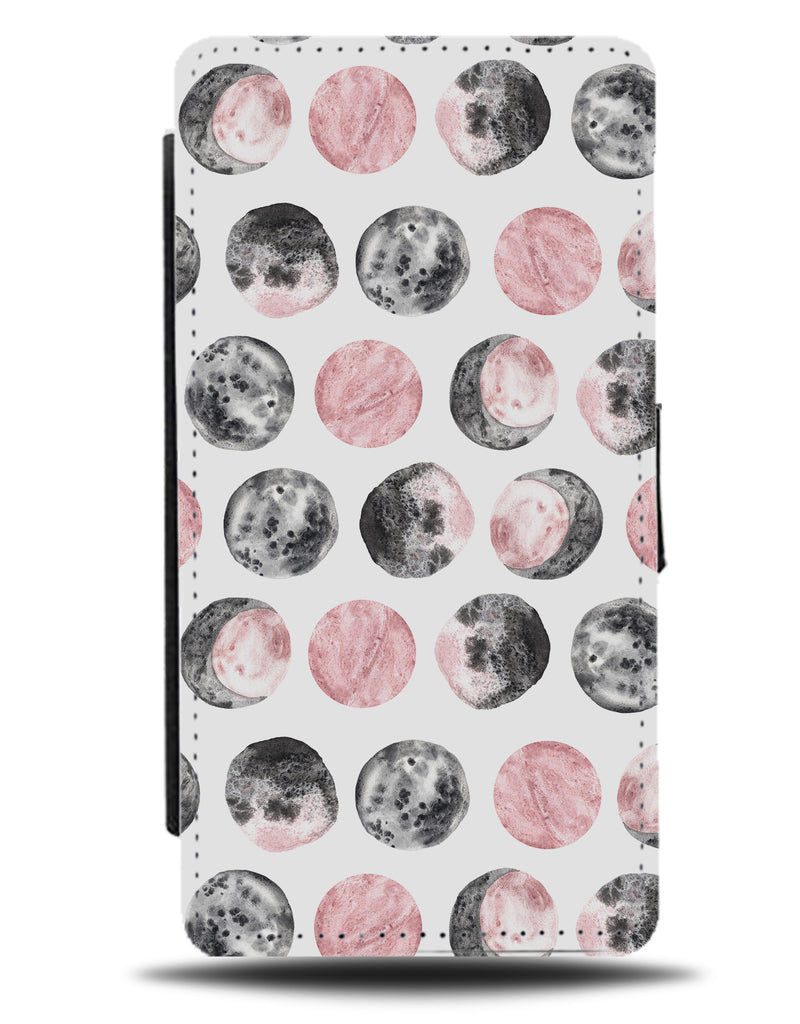 White Polka Dot Moon Flip Wallet Phone Case Moons Space Pink Black Watercolour Q898B