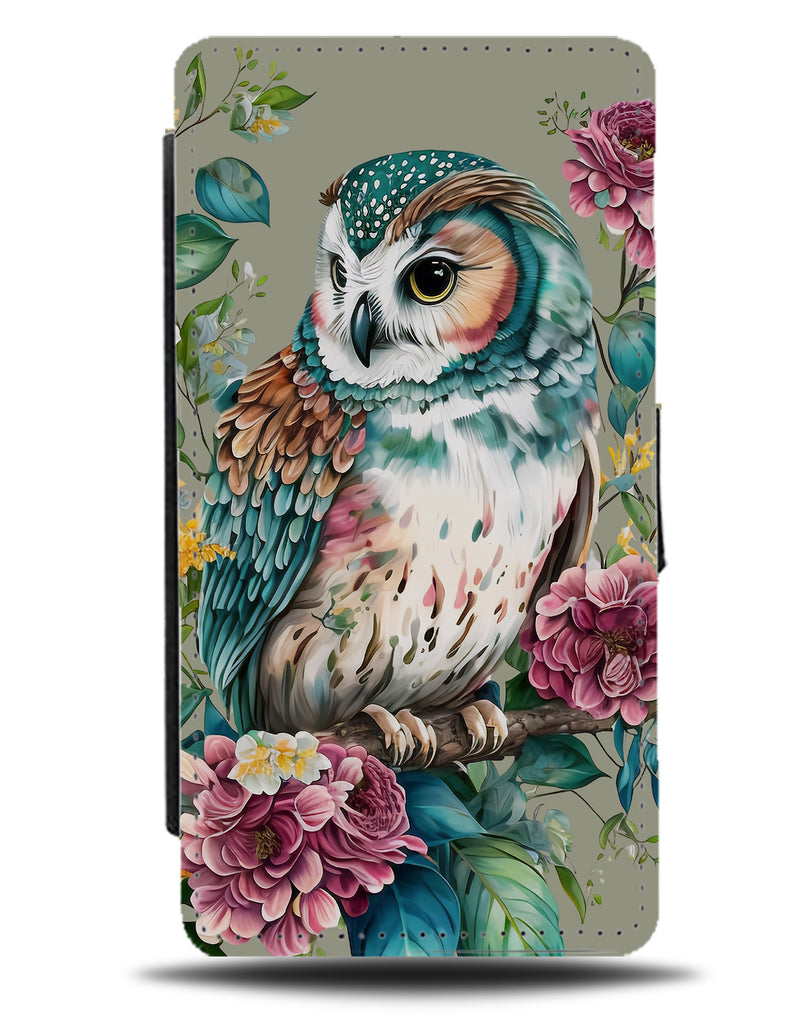 Vintage Floral Owl Flip Wallet Phone Case Flowers Colorful Multicoloured Vibrant BH24